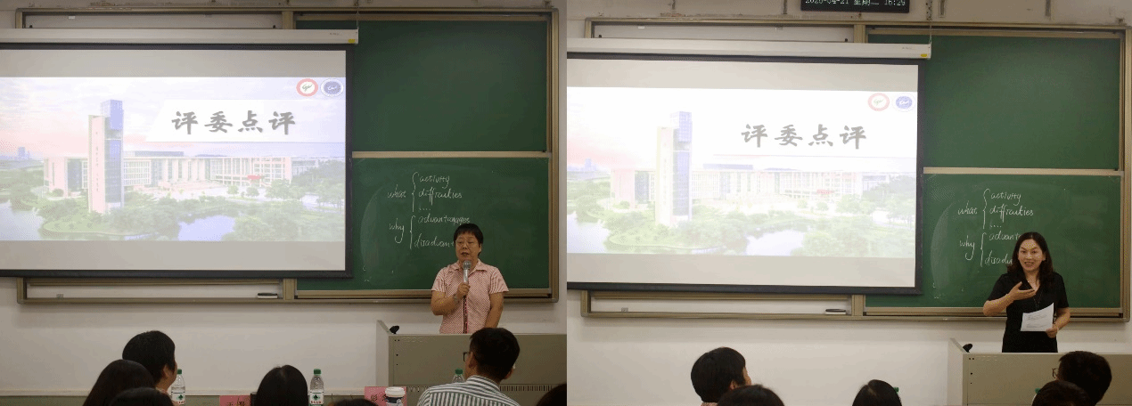 比赛结束后,评委团对选手表现进行了详尽点评。徐俊仪副教授指出,选手们在教学内容的把握、课堂语言的自然表达以及课件设计等方面表现亮眼,展现出良好的专业素养与教学能力。同时,她也提醒大家要注意把握不同课型的着重点,读思课要介绍题材,挖掘文本,引导学生基于语篇做深度思考,突出主题意义和批判性思维。读写课内容支架和语言支架搭建要充分,不局限于文本提供素材。听说课要注意输入信息的内化,比如通过复述、角色扮演等帮助学生内化,再进阶到迁移创新类的输出活动。汤先荣老师则提醒同学们要巧用人工智能,在课前布置前置性作业,提高课堂学习效率。在设计活动时,要着重生生互动,如通过辩论、讨论等形式以学生为中心展开教学。并注意读思课以读促思的重要功能。