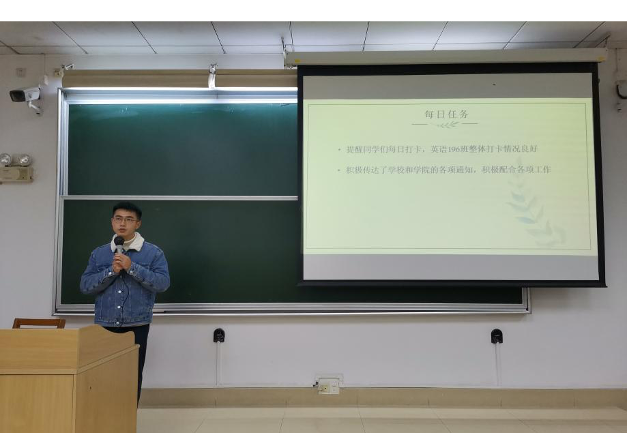 会议最后,柳老师从当下疫情形势及学校政策、期末诚信考试、防诈防骗、期末及寒假安全教育、宿舍安全用电及文明住宿等方面对大家进行了叮嘱。她还指出,大家已经马上要踏入大三下学期,对自己未来的道路应该有了更清晰的认识和规划,无论是计划考研还是想直接工作,都应该提前做好规划。最后,柳老师希望大家不负青春韶华,不负时代嘱托,肩负起新时代大学生应有的责任和担当。