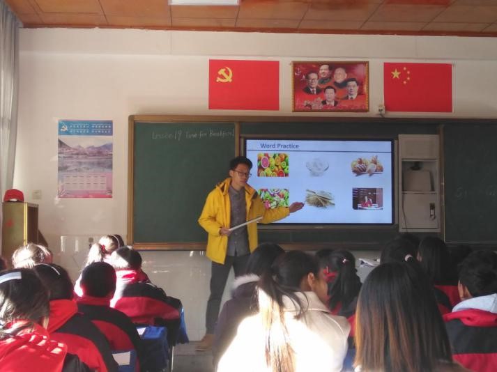 在波密县中学实习支教的学生王宸鑫认真备课,用心准备,针对波密县中学的学生英语基础,因地制宜,因材施教地设计课程,向考核老师们展示了一节生动有趣的初一英语公开课。
