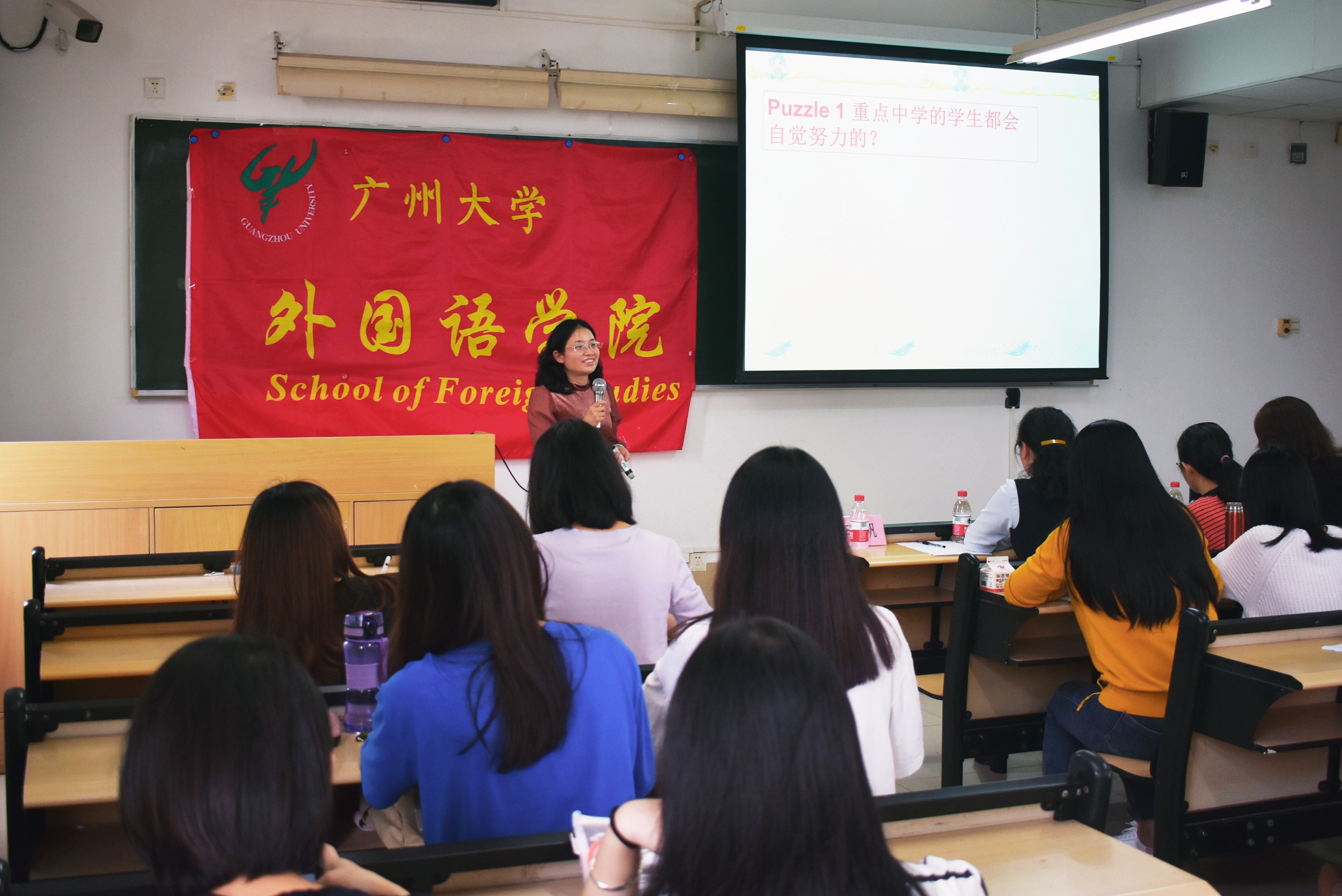 “基础教育名家大讲坛”暨“基础教育名师面对面”第四场活动在文新524课室举行。该活动也是广州市基础教育系统新一轮“百千万人才培养工程”第三批中学名教师培养对象的示范带学活动,由学院副院长苏远连教授主持,英语系陈丽虹副主任、杨冬玲副教授与16级本科生、18级研究生出席了活动。