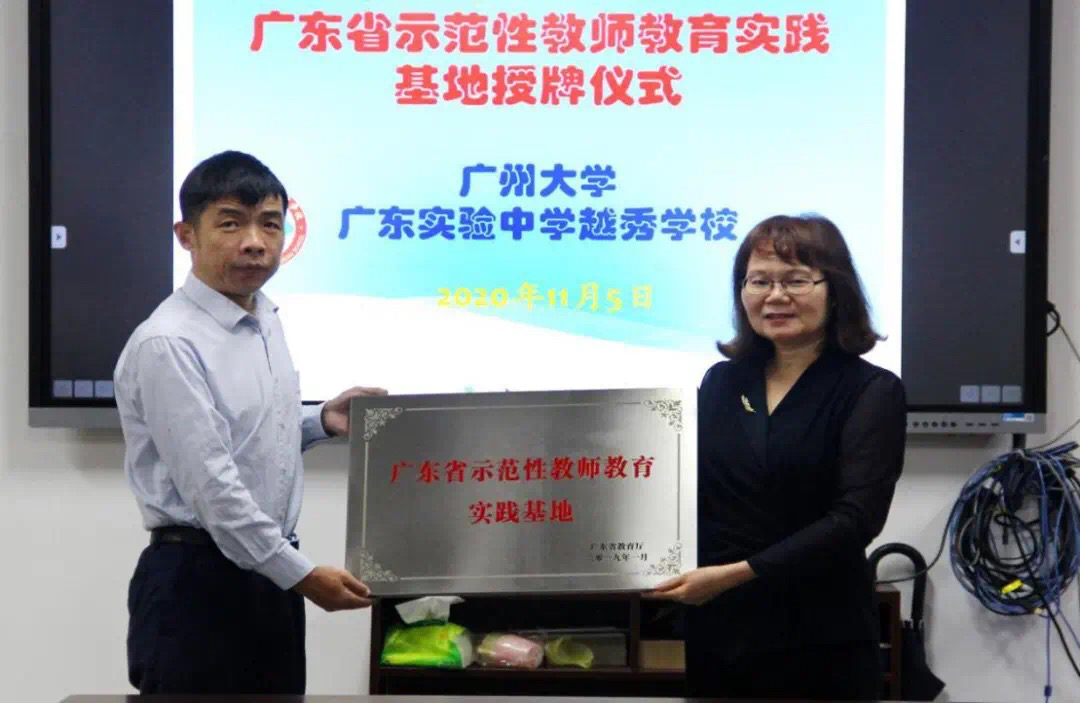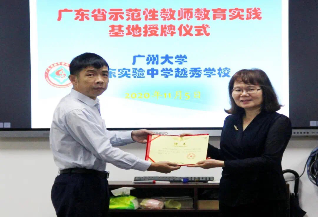 省级示范性教师教育实践基地授牌仪式在广东实验中学越秀学校举行。苏远连副院长向广东实验中学越秀学校戎振纲校长授牌。探花视频