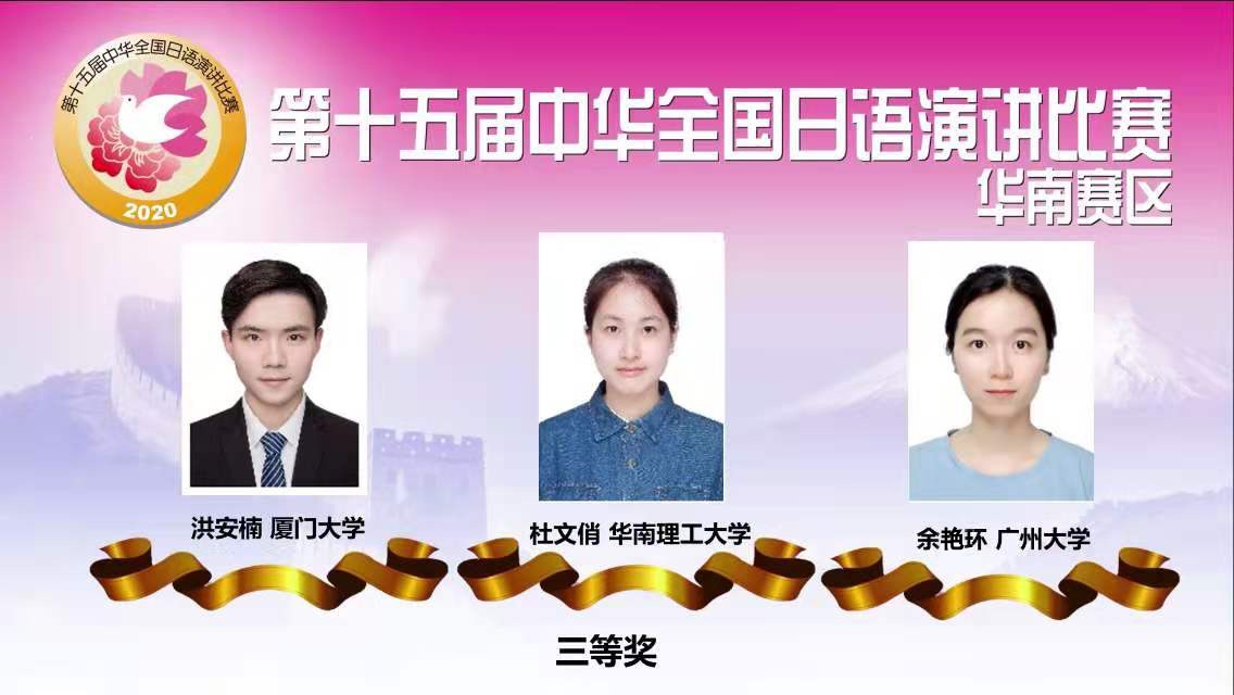 东语系日语专业学生余艳环参加第15届中华全国日语演讲比赛华南区预赛,并荣获三等奖,为学校赢得荣光。